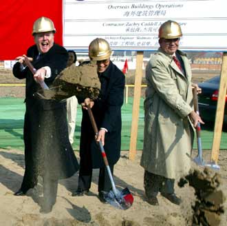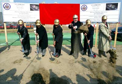 ceremony for the new U.S. embassy in Beijing on February 10, 2004.