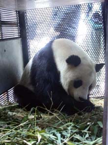 US-born giant panda Hua Mei was so disoriented when she arrived at her new home at the Wolong Nature Reserve, southwest China's Sichuan Province, that she refused to leave her travel cage for two hours.