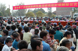 Isolation ends in China's 1st bird-flu-hit town (newsphoto) Updated: 2004-02-22 22:24