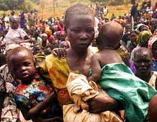 A mother and her children arrives in Lira this month after fleeing rebels. [AFP]