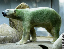 It's a wee bit early for St. Patrick's Day, but Singapore Zoo's two polar bears have turned green.
