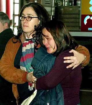 Unidentified relatives arrive at the Madrid morgue on March 11, 2004. Spain's interior minister said a suspect van had been found near Madrid, the scene of the bombings that killed 192 people, containing seven detonators and a tape in Arabic. Interior Minister Angel Acebes said the tape contained recordings of verses from the Koran. [Reuters]