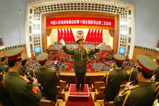 The military band plays at the closing ceremony of the 2nd session of the 10th Chinese People's Political Consultative Conference in Beijing on March 12. [Xinhua]