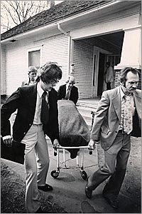 The body of Shirley Vian is carried from her house in Wichita, Kan. in 1977. [file photo]