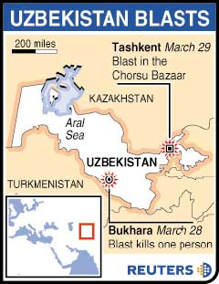 Security was increased across the city, with soldiers on patrol and hotels deploying metal detectors and not allowing vehicles to approach. Soldiers with dogs patrolled the airport, but flights continued. Nineteen people were killed and 26 wounded Sunday and Monday in violence that included the first suicide bombings in formerly Soviet Central Asia. U.S. Secretary of State Colin Powell offered assistance Tuesday to the Uzbek government in its investigation. A U.S. counterterrorism official, speaking on condition of anonymity, wouldn't comment on whether the United States was helping with surveillance or other aspects of security in Uzbekistan, nor could the official provide any details ! or "signatures" ! on the bombs. State Department spokesman Richard Boucher said the United States had no information on who was responsible for the current attacks but noted the Islamic Movement of Uzbekistan has been the dominant threat in the country. The group was believed to have been decimated in the U.S.-led anti-terror operations in Afghanistan, and Pakistani forces this month hunting al-Qaida fugitives on the Afghan border said they wounded the IMU's political leader. Karimov has blamed the violence on Islamic extremists, and said several arrests had been made. He said Monday that backing for the attacks might have come from a banned radical group that has never before been linked to terrorism ! Hizb ut-Tahrir. The group denied involvement. Uzbek authorities claim Hizb ut-Tahrir is a breeding ground for terrorists and have sought unsuccessfully to have Washington label it a terrorist group. Karimov said the attacks were planned six to eight months ago and maintained the organization and funding required to carry out such attacks indicated they had outside support. However, David Lewis, project director in Central Asia for the International Crisis Group think tank, noted that only local targets were attacked. "This looks like a series of attacks directly on the Uzbek regime, and specificially on the police," he said. "In that sense it looks less like IMU with its more global outlook than some more domestic group." New York-based Human Rights Watch released a report Tuesday documenting the government's campaign of religious persecution, including torture and arrests of people engaged in legitimate religious activity ! and expressed worry that the latest violence could spark a renewed crackdown on Muslims who choose to worship outside state-run mosques. As police worked to gather evidence Tuesday fighting, residents worried that the violence wasn't over. "Yesterday, Karimov said everything was fine in Uzbekistan and today it is happening again," said Farida Raupkhajayeva, 50. "We are afraid there will still be more." |