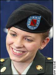 Last month Lynch postponed her June wedding to Sgt. Ruben Contreras, whom she began dating two years ago when they were stationed at Fort Bliss in Texas. She would not discuss details but said they plan to wed next year. Eventually, Lynch said, she will go to college to work toward her goal of teaching kindergarten. Her face lights up whenever she discusses the job, or children. Lynch is uncertain whether her wounds will prevent her from starting her own family. "I do have a lot of problems with everything inside, so I don't know if that'll affect it or not. I hope not, because I'd love to have children," she said. With a shy smile, she added, "Love it." |