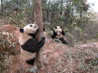 Qizhen, a four-and-half-year-old female panda at the Giant Panda Breeding and Research Base in the provincial capital Chengdu has been declared pregnant shortly after she found her first-ever Mr Right at the base. Qizhen became the 10th female giant panda to become pregnant this year, said Zhang Zhihe, director of base's breeding technology committee. Zhang and his colleagues will use state-of-the-art artificial fertilization technologies to impregnate female pandas in oestrus: including 13 at the Chengdu base and 10 at the Wolong Giant Panda Breeding and Research Centre. "We expect to welcome a record number of panda cubs by this autumn," said Zhang. In 2003, 19 baby pandas were born via natural or artificial insemination in China's breeding bases and 16 of them survived. The survival rate of panda cubs has risen markedly from 30 per cent several decades ago to nearly 90 per cent in recent years as a result of better feeding and monitoring. Giant pandas show little instinctive behaviour towards sex in captivity,since the animals tend to become fat, listless and out of shape. Officials at some enclosures have been trying to put the rare mammals on exercise programs. Forestry authority statistics show fewer than 10 per cent of male giant pandas mate naturally and fewer than 30 per cent of females end up conceiving after trysts with panda romeos. Female pandas normally are mature enough for mating at age four or five and have only one chance for pregnancy each year. They deliver one or two tiny, helpless cubs after a 160 day gestation period. Chinese zoologists have worked hard to breed the bears, resorting to artificially introducing frozen semen and even showing the panda videos of other bears mating trying to arouse their latent sexual instincts. The country has made remarkable progress. Ten cubs were born 2002, with 16 last year. There are 160 giant pandas in captivity worldwide, two-thirds of which are living at Wolong and Chengdu. s one of the most endangered species in the world, the number of pandas left is thought to be around 1,000, with most living in the high mountains in Southwest China. |