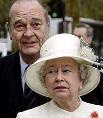 French President Chirac greeted Britain's Queen Elizabeth II in Paris.  [AP]