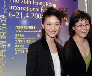 Key individuals for the romantic film "Baober in Love", including director Li Shaohong(C), actress Zhou Xun(L), meet the audience at the 28th Hong Kong International Film Festival. [Xinhua]