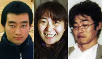 From left to right, Noriaki Imai, 18, Nahoko Takato, 34, and Soichiro Koriyama, 32. [Reuters]