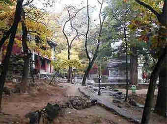 Dajue Temple is best known though for its Yulan trees, planted almost 300 years ago. There are many flowers and trees in the courtyards, the finest being the magnolias. It is said that a monk brought two of the specimens found in the southern courtyard from Sichuan during the Qianlong era, and one of them survives today. Another magnolia in the northern courtyard was transplanted about 100 years ago, and grows alongside a ginkgo tree. The ancient tree usually blossoms around the April 5 every year, during the traditional Chinese Everbright Festival. Dajue Temple, or the Temple of Enlightenment, stands at the foot of Yangtai Hill in Beijing's western suburbs. The rolling hills here are sometimes said to resemble a sleeping lion. The vista of two flanking temples, the Lotus Temple and the Temple of Universal Grace-sitting atop Hills to the west and east of the Temple of Enlightenment, is popularly described as "A lion Rolling Two Embroidered Balls?or "A Buddha and Two Bodhisattvas.? The principal structures in the temple are the Maitreya (Future Buddha) Hall, the main hall, the rear hall, the northern and southern courtyards and, at the very rear of the complex, a peaceful courtyard. The roof brackets and columns of the halls date from the early Ming Dynasty (1368-1644). A mountain spring flows by the Qiyun (Restful Clouds) Pavilion in the rear courtyard. By the spring is a stupa which stands at the highest point in the temple complex. Inside the temple is a Liao Dynasty (916-1125) stela on which it is recorded that, more than 1,000 years ago, the temple was named the Clear Stream Court after the nearby springs. Although the carving is blurred and the stela itself broken into two pieces, most of the inscription remains legible. There are a number of interesting sights in the immediate vicinity. They include Vulture Peak; the tomb of a Qing prince; Yang Family Garden and Lotus Temple and the Temple of Universal Grace. All are accessible by mountain roads. Minghui Tea House is located in the temple and offers a tea service with Taoist features. Recently some mountain villas were built near the temple to provide a dining, entertainment and accommodation service for visitors to the temple. The most convenient is Miaoling Villa, about 5 kilometres south of the temple. The villa itself is also worth a visit thanks to the vast area of Yulan, peach and pear blossoms, and the Buddhist culture apparent from its layout and decoration. An inkslab, about 4 square metres, is said to be the largest in China and is displayed in the villa. The inkslab is held by nine stone dragons. The sculpture attracts many visitors. Inside the courtyard of the villa are many Yulan trees, which are all in blossom now. The villa offers entertainment and sports facilities ranging from swimming pool, bowling, tennis, sauna, massage, dance hall, movie house, and shooting. Different styles of dishes are also available. For a two-bed suite here, expect to pay around 380 yuan (US$48) a day. The fee includes some entertainment facilities. To get to Dajue Temple and Miaoling Villa, take the Badaling Highway to the north and get off at the Beianhe Exit. Then take Beiqing Road to a T-junction. Turn left for the villa and turn right for the temple. Check signposts along the way. For visitors starting from west of downtown Beijing, go north beyond the Summer Palace, pass through Heishanhu, Xibeiwang, Heilongtan (Black Dragon Pool) and the Wenquan (Hot Springs), and then go through the two villages of Beianhe and Zhoujiaxiang before coming to a steep path, which leads to the main gate of the Dajue Temple. Bus route 346 from the Summer Palace gets you to Beianhe Nankou Stop. which is 2 km from the temple. Entrance: 10 yuan (US$1.2). Temple tel: 6245-6163 (Chinese only) Villa tel: 6248-1188;6245- 0047 (Chinese only) |