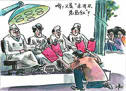 It has long been a popular practice in China for patients to give doctors a red envelop filled with cash before or after undergoing surgery to express their gratitude. Envelopes would generally contain at least 1,000 yuan (US$120), which would be split between all of the doctors and nurse who take part in the operation. "The low income doctors earn is the root of the irregular practice," said Lu Ye, an official with Yangpu District Central Hospital. Lu points out that newly graduated doctors earn about 2,000 yuan a month, less than many other university graduates around the city, and even those who rise to become hospital directors only take home 4,000 yuan a month. "Those salaries are not in line with a doctor's qualifications and skills." While the city of Shanghai has been pushing to stop the practice of giving red envelopes over the past few years, many doctors have found new ways to supplement their incomes, such as taking commission from drug companies to prescribe medications not covered by the city's health insurance system, according to those in the health sector. Some of the money raised that way is put into hospital funds for professional training and academic exchanges, while the rest is distributed to doctors and nurses, said a local pediatrician surnamed Wu. "It is a public secret in many hospitals. Our income can't support various academic moves and other expenditures. There will still be loopholes even after the ministry's order." Gao Qiang, China's vice-minister of Health, has called on health officials around the country to set up complaint hot lines and mailboxes and let the public know where they can report doctors taking gifts or commissions. "Though it is only some medical workers' improper behavior, it has hurt the