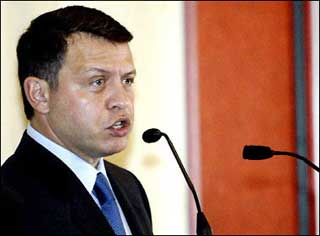 Jordan's King Abdullah II speaks to the press. [AFP]