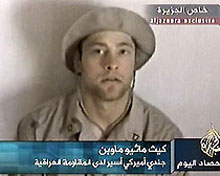 Pfc. Keith Matthew Maupin is shown on a videotape broadcast Friday April 16, 2004 by Al-Jazeera. [AP]