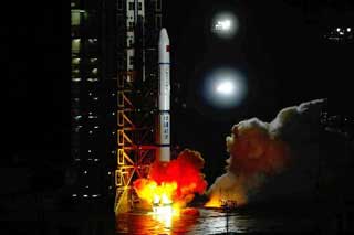 A Long March rocket blasts off from Xichang April 18, putting two experimental satellites into orbits. [Xinhua]