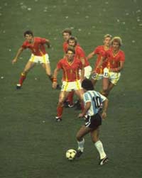 Maradona played 91 matches for Argentina and scored 34 goals, including his infamous "hand of God" goal against England when he fisted the ball into the net. His career began in 1977 and ended in 1994. He has played for a host of famous clubs including Boca Juniors, Newells Old Boys and Napoli in Italy's Serie A. Maradona also played for Barcelona and Sevilla in Spain. |