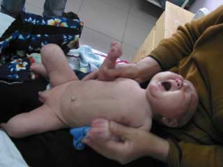 A baby suffers from malnutrition after drinking cheap milk powders. [Xinhua]