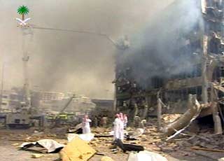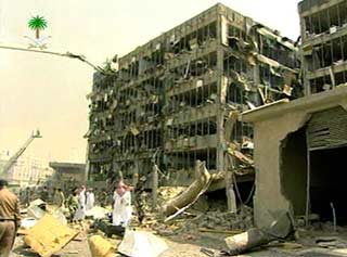 Saudi state television showed an entire government building wrecked after a car bomb rocked the capital Riyadh on Wednesday. "A huge explosion took place in a building and a fire broke out," the television said. The facade of the building was blasted away and a number of cars on the street were completely damaged. [Reuters]