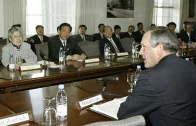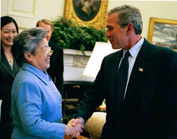 In the discussion on agricultural issues, China refused to lift its current bans on imports of American beef and American poultry imposed because of recent health concerns. However, it did lift a ban it had imposed in January on the importation of certain American cosmetics after receiving documentation that showed the products did not contain any animal-related ingredients prohibited in China. Veneman expressed confidence that the beef and poultry bans would soon be fully lifted, and she predicted American farmers would continue to benefit from the removal of trade barriers since China entered the WTO in late 2001, a time period in which U.S. farm exports to China have tripled. Bush, Wu hold talks US President George W. Bush met with visiting Chinese Vice-Premier Wu Yi at the White House on Wednesday and reiterated that the United States sticks to the one-China policy. Bush told Wu that there is no change in the position he stated about the Taiwan issue when he met with Chinese Premier Wen Jiabaoin the Oval Office of the White House on Dec. 9 last year. "We oppose any unilateral decision by either China or Taiwan to change the status quo, and the comments and actions made by the leader of Taiwan indicate that he may be willing to make decisions unilaterally to change the status quo, which we oppose," Bush said at a joint appearance with Wen at that time. In his meeting with Vice-Premier Wu, President Bush also said he was pleased with the positive outcome of the 15th session of the China-US Joint Commission on Commerce and Trade. Bush said the US side fully recognizes the importance of economic and trade cooperation to the relationship between the two countries, and hopes to further expand trade with China and bring more benefits to the two peoples through continuous development of bilateral economic and trade relations. Wu said the Chinese side was pleased with the progress made in Sino-US relations in recent years. She urged the US side to exercise prudence in handling the Taiwan issue and abide by its commitments in the three joint communiques to ensure steady progress in the Sino-US relationship. |