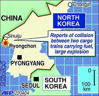 "The area around Ryongchon station has turned into ruins as if it were bombarded," Yonhap quoted witnesses as saying. "Debris from the explosion soared high into the sky and drifted to Sinuiju," a North Korean town on the border with China, it said.