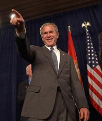 Wrapping up a day of campaigning and fund raising Friday in Florida before flying to Camp David, Bush vowed that "America will never be run out of Iraq by a bunch of thugs and killers."