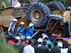About a hundred emergency workers and police used heavy machinery to try to clear the mangled wreckage and get to the children ¡ª ages 7 to 12 ¡ª trapped inside.
