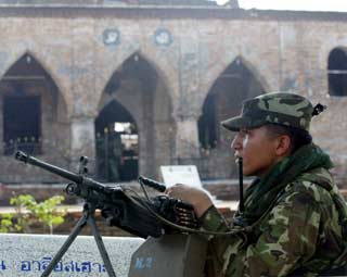 Others echoed the view of the prime minister. "Allah has punished these bad guys. We hope peace and prosperity will return," said 75-year-old Haji Nisen Nilae, the mosque's caretaker for the last four decades. A middle-aged Muslim lawyer, who declined to be identified, said authorities in the predominantly Buddhist state had ridden roughshod over Islamic sensibilities. "Soldiers and police killing Muslims in the mosque is not good," he said. "The mosque is a holy place for Muslims, just as the temple is a sacred place for Buddhists." One of Thaksin's security advisers said the attacks could have been coordinated by separatists. "The incidents were pulled together by separatist movements and gangs of drug dealers and contraband smugglers," Lieutenant-General Kitti Ratanachaya told Bangkok television. The region is a hotbed of crime, feeding off a lucrative cross-border smuggling trade with neighboring Malaysia. Analysts say that does not explain why so many of Wednesday's attackers were young, Muslim and appeared ready to die. Authorities appealed for calm as a debate over whether the administration's 'get tough' policy adopted after a spate of violence erupted in January is the right way to win over a local population with few ties to the mainly Buddhist country. |