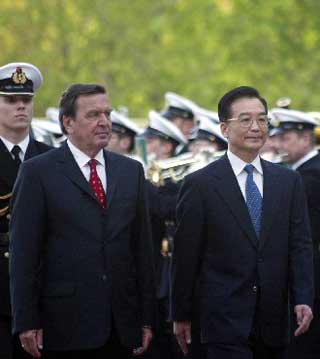 Schroeder said he fully agreed to Wen's proposals on developing bilateral ties. Germany supports the European Union's recognition of China as a full market economy and the lifting of the arms sales ban on China. Germany is willing to play a positive role in these respects, he added.