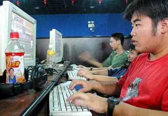 Chinese youths play an online football game at an internet cafe on Thursday, July 24, 2003 in Shanghai, eastern China. China had 68 million Internet users as of the end of June, 8.9 million more than half a year ago, Xinhua News Agency reported. [AP]