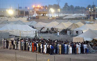 Inmates of the Abu Ghraib Prison listen to a sermon during evening prayers in the prison on the outskirts of Baghdad, Iraq, May 7, 2004. [AP]
