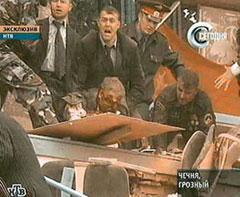 Valery Baranov, commander of Russian forces in the region, underwent surgery for serious wounds at a military hospital. There were scenes of pandemonium at the Dinamo stadium after the blast as people ran in panic and smoke rised from the wreckage. Television showed a man carrying a young boy, unconscious and bleeding from the mouth, down the terraces. Another old man, blood pouring through a bandage on his head, was being helped away by two men. Reports said about 20 people were wounded. Reuters journalist Adlan Khasanov, who was covering the event, was among those killed, his brother said. Khasanov, 33, had worked as both a Reuters photographer and television videographer since the late 1990s, mostly in his native Chechnya.