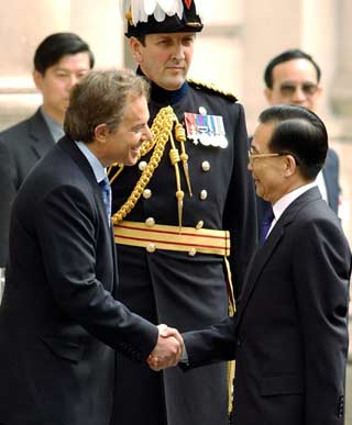 "Sino-British relations will advance forward so long as we treat each other on the basis of mutual respect, equality and mutual benefit to create a win-win situation," Wen said when he and Blair met with journalists after the two leaders spoke. Blair said the co-operation between the two countries is strong across a range of issues, economically and politically. The two sides Monday signed a number of documents on bilateral co-operation, ranging from a crackdown on illegal immigration, to science and technology, to education and joint-ventures in petroleum and chemicals. Wen and Blair also said the nations will work closely on international economic problems to promote sustainable development. Government leaders and foreign ministers of the two countries will exchange annual visits to reinforce and extend political co-operation in fields such as strategic security and non-proliferation. Blair is expected to visit China next year to initiate the annual summit between prime ministers of the two countries. Both said they look forward to continuing high-level dialogue at summits between China and the European Union (EU) later this year and the next. The United Kingdom will assume the EU presidency in 2005. Following Tony Blair's visit to China last year, both sides decided to establish task forces to facilitate bilateral trade and investment, finance, energy, education and culture, science and technology, the environment including climate change, and sustainable development. Wen and Blair Monday agreed to further promote such co-operation in a range of areas in trade and investment through the Joint Economic and Trade Commission in line with the recommendations of the task forces. The task forces suggested that bilateral collaboration give priority to finance, energy, information and communication technology, health care and water resources, along with developing programmes within industry to generate positive business outcomes. The two sides will also increase co-operation in the areas of science, technology, education, culture and environmental protection in line with task force proposals. Wen and Blair also discussed issues relating to the Hong Kong Special Administrative Region. Both men reaffirmed their commitment to the implementation of the Joint Declaration between China and the United Kingdom on the issue of Hong Kong. They agreed that it is in the interests of both sides to maintain and promote Hong Kong's prosperity and stability in accordance with the "one country, two systems'' principle and Basic Law. Blair reaffirms position on HK, Taiwan Blair reaffirmed the British Government's consistent position on the question of Taiwan as set out in the China-UK Joint Communique of 1972, in which Britain acknowledged the Chinese position on Taiwan as a province of the People's Republic of China and recognized the government of the People's Republic of China as the sole legal government of China. The two countries pledged to continue their human rights dialogue on the basis of equality and mutual respect. The next round of the talks will take place this month. The UK side said it welcomes the recent addition of respect and protection for human rights to the Chinese Constitution. On international co-operation, both vowed to increase co-ordination to promote reforms in the United Nations to ensure greater respect for the UN Charter and international law. The two sides committed themselves to expanding co-operation within the framework of UN peacekeeping. Wen said China would like to strengthen consultations with the UK including issues on the Middle East and Iraq. Both men reiterated their determination to combat terrorism and promote weapons non-proliferation. They will launch a China-UK anti-terrorism dialogue. The UK also welcomes China's leading role in the Six Party Talks on the Korean peninsula nuclear issue. The two countries will intensify exchange and co-operation in security, arms control, and disarmament and non-proliferation areas, according to the joint statement. China and the UK Monday reaffirmed their commitments to work together to combat illegal immigration by signing a Memorandum of Understanding on the Facilitation of Legitimate Travel and co-operation to Combat Illegal Immigration. They also endorsed closer police co-operation to crack down upon transnational crime. The two countries pledged to enhance co-operation on international economic problems and to promote sustainable development as well. The joint statement says both are committed to international trade liberalization and will continue to advance the Doha Development Agenda negotiations and they will work towards reaching a framework agreement this year. Noting the importance of effective protection of intellectual property rights in fostering foreign investment and creating a positive business environment, each side agreed to enhance mutual co-operation on protection of IPRs. China and the UK reiterated their support for the UN Framework Convention on Climate Change and urged parties that have not yet ratified the Kyoto Protocol to do so as soon as possible. Both Wen and Blair were later present at a seminar on contemporary economic restructuring from the Chinese and British social and economic perspectives. The event was jointly hosted by the Chinese Academy of Social Sciences and the British Foreign Policy Centre. The Chinese premier Monday also met with Michael Martin, the speaker of the House of Commons. Wen attended a seminar on how to revitalize China's old Northeast industrial base. He was also present at the launching ceremony of a Sino-British website on commercial co-operation. |