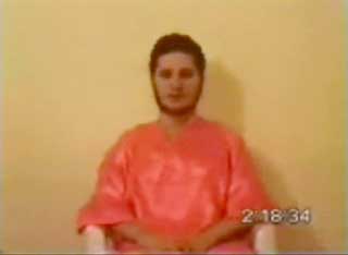 U.S. officials had feared the shocking photographs of U.S. soldiers abusing and humiliating Iraqis at Abu Ghraib prison west of Baghdad would endanger the lives of American troops and civilians. Also, Berg's killing happened amid a climate of intense anti-Western sentiment, which flared in Iraq after last month's crackdown on Shiite extremists and the three-week Marine siege of Fallujah west of Baghdad. Anger at the United States swelled with the publication of the Abu Ghraib photographs, which continue to stir rage throughout the Arab world. In the video, five men wearing headscarves and black ski masks stand over a bound man in an orange jumpsuit similar to prison uniforms. "My name is Nick Berg. My father's name is Michael. My mother's name is Suzanne," the man, seated in a chair, says. "I have a brother and sister, David and Sara. I live in ... Philadelphia." The video then cuts to Berg sitting on the floor, his hands tied behind his back, flanked by the masked men, as a statement is read in Arabic. Berg sits still during the statement, facing the camera, occasionally raising his shoulders. After the statement, one assailant takes a large knife from under his clothing while another pulls Berg onto his side. The tape shows assailants thrusting the knife through his neck. A scream sounds before the men cut Berg's head off, repeatedly shouting "Allahu Akbar!" — or "God is great." They then hold the head out before the camera. The video is of poor quality, and its time stamp seems to show an 11-hour lapse between when the assailants finish their statement and push Berg down, to when they behead him. That suggests a delay between those two portions of tape posted on the Web site.