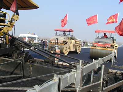 Bulldozers pave the last section of a newly completed highway. Experts warn that corruption might not be wiped out completely without a proper mechamism for supervising such projects. [newsphoto/file]