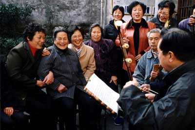 Senior residents are entertained by a group of community workers in Dinghai District, Zhoushan City of Zhejiang Province. [newsphoto]
