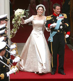 Along the parade route, people hung out from windows to see the newlyweds and royal dignitaries, including Swedish King Carl XVI Gustaf and Queen Silvia; Japanese Crown Prince Naruhito; Spanish Crown Prince Felipe; Britain's Prince Edward and his wife, Sophie; Australian Governor General Michael Jeffrey and Tasmanian Governor Richard Butler; and France's first lady, Bernadette Chirac. All day Friday, most of Copenhagen was closed to cars — except for the fleet of nearly 100 limousines and dark buses that ferried the guests to the church and to Fredensborg Palace for the evening wedding dinner and traditional wedding waltz. As Frederik and Mary arrived in Fredensborg, they switched the Rolls-Royce Silver Wraith with an open carriage, a so-called Landau, built in 1889, and rode the last section to the cheers of thousands. "So you got to see your princess?" Susanne Larsen asked her 4-year-old daughter Emma-Sophie, riding atop the shoulders of her father, Steen. "I don't think she saw me," the daughter said, disappointed. During the dinner, Frederik pledged his love for Mary, telling her father, John Donaldson, that "I will love her and I will protect her with all my heart." Then he told Mary: "I love you Mary. Come, let us go, come let us see. Throughout a thousand worlds, weightless love awaits." |