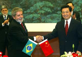 Hu said such recognition will consolidate the strategic partnership between China and Brazil and further enhance bilateral trade ties. Brazil is China's largest trade partner in Latin America, and China is Brazil's fourth largest trade partner, according to the Ministry of Commerce. Lula arrived in Beijing on Saturday evening for a six-day state visit to China. Afterwards, he will travel to Mexico to attend the third summit between Latin America and the European Union. Lula also told Hu that Brazil supports China's stances on the question of Taiwan and such issues as human rights, according to the spokesman. Hu and Lula Monday also signed a joint communique. Hu said the success of Sino-Brazilian collaboration indicates the potential and vigor of co-operation between developing countries. The first Sino-Brazilian ERJ145 regional jet aircraft made a successful 10-minute test flight in Harbin, capital of Northeast China's Heilongjiang Province, last December. Two months before that, in October, China successfully launched the second of a series of four scientific research satellites developed jointly with Brazil. The two countries launched their first Earth Resources Satellite, developed at a cost of US$300 million, in October 1999 to gather information on the environment, agriculture, urban planning and water pollution. The second satellite also aimed at collecting environment data during its two-year life span. Lula said Brazi is confident of the prospects of working with China on political, economic and trade and technological areas. An impressive lineup of visitors also made the trip with the Brazilian president. His entourage includes ministers of foreign affairs, agriculture, planning and finance as well as development, industry and foreign trade. A delegation of roughly 500 businessmen is also travelling with the president to seek Chinese business opportunities. Lula said he hoped to enhance bilateral co-operation in agriculture, energy and mineral resources, science and technology, space and information technology, as well as infrastructure construction. Brazil's petroleum giant Petrobras set up a representative office in Beijing on Sunday, and the visiting Brazilian president attended the inauguration ceremony. Petrobras, as Brazil's biggest state-owned enterprise, plays an important role in Brazil-China economic and trade ties, Lula said, adding there is huge potential in energy co-operation between the two countries. The Brazilian president will also attend the Global Conference on Poverty Reduction in Shanghai during his visit. |
