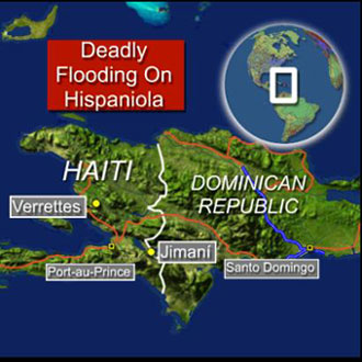 The flooding followed days of torrential rain on the island of Hispaniola, shared by Haiti and the Dominican Republic. Thousands were left homeless in the two countries.