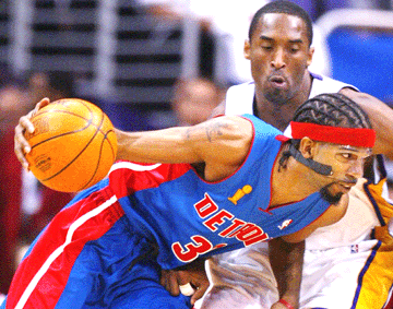 The Pistons were all business at Monday's practice as they seek their fourth consecutive playoff road triumph here Tuesday in game two of the best-of-seven series. Brown ran the players through their drills at Staples Center arena, using second-stringers in the roles of O'Neal and Bryant as they worked on pick-and-roll plays. Brown said watching the tape of Sunday's game made him realize that they are a better shooting team than even he sometimes gives them credit for being. "You are never as good as you think you are when you watch the film and generally you are usually never as bad," said Brown, who registered his 82nd career playoff coaching victory to pass K.C. Jones for fourth on the all-time list. "But the reason we won is we made shots. That got our defence a chance to set up which impacted the Lakers." Richard Hamilton is the Pistons' top scorer in the playoffs, averaging 21 points. But he scored just 12 on Sunday. Hamilton shot 5-of-16 and had six turnovers. With Hamilton in trouble offensively, the other Piston starters stepped up, especially Rasheed Wallace, who had 14 points and eight rebounds in just 29 minutes of playing time. "We had contributions from a lot of people," Brown said. "We shot 47 percent, we rebounded the ball effectively and we had four turnovers in the second half." The Pistons are the best defensive team in the NBA and they showed why on Sunday, snapping Los Angeles' nine-game post-season home winning streak. "When we get our defense set, we are a tough team," Billups said. Said Wallace, "Defence wins championships. You can go out there and score a million points but if you are giving up a million and one then what good is it? "Defence is critical at this time in the series." Billups expects to see a different Laker team on Tuesday, one with more intensity and aggression. The series then shifts to Detroit for game three on Thursday. "I am sure they will try to push the tempo," Billups said. "They will make adjustments, but we are going to stay consistent and not change too much. "If they make adjustments that's OK because we are pretty good at making changes on the fly during a game." Billups was able to bottle up Lakers guard Gary Payton, holding the future Hall of Famer to just three points on Sunday. "He's got a lot of pride and for the past 10 to 12 years he's been the best point guard in this league. But you know he's going to be playing a lot harder (Tuesday). "It felt good for me to play well and all that but it's a long series." |