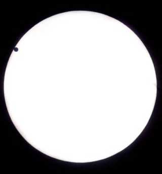 Venus was crossing from bottom left of the solar disc to the right and was 43 million kilometres (26.7 million miles) from earth. German astronomer Johannes Kepler first predicted a transit of Venus in 1627 but he died before he could witness one. English astronomer Jeremiah Horrocks first observed it in 1639.