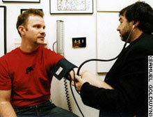 Spurlock gets his vital signs checked. During the course of making "Super Size Me," he gained weight and his cholesterol shot through the roof.