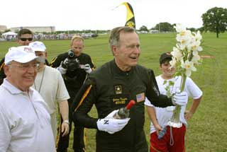 "It's been a great day," Bush said after sailing to the ground, landing and scooting a ways on his backside. "This was a day of joy and a day of wonder for the Bush family, certainly for the old guy."
