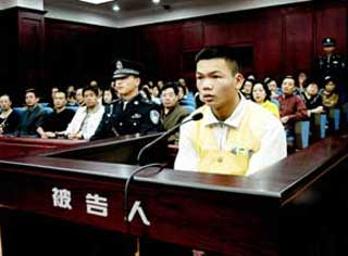 Ma Jiajue stands trial in a Kunming court April 22, 2004 for killing four classmates.