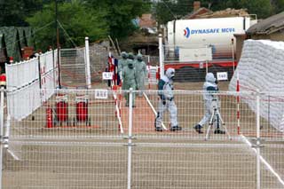 The Japanese experts with full gear to protect themselves from chemicals began their work at the site at about 4:10 pm. They were assisted by Chinese soldiers.