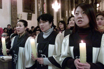 Chen seldom went to church before retirement. Because Jixian County, where he used to live, was about 60 kilometres east of Beijing, it was difficult for him to attend church activities when he was young. When he grew up, he moved to Northeast China, where there was no nearby church to attend. Even so, Chen never forgot he was a Catholic and always followed Catholic teachings. In the eyes of his colleagues and neighbours, Chen is easy-going, generous and forgiving. His behaviour has influenced relatives and colleagues, many of whom have been converted to Catholicism. Nowadays, Chen devotes most of his time to religious activities. He goes to Mass and reads the Bible every day. On Sundays he shares his feelings and experiences with his fellow Catholics. "Even if there is no paradise, I am still grateful to Catholicism for having given me a peaceful life filled with tolerance and love," Chen says, crossing himself. Unlike Chen's experience, Zhang Huanzhi became a Catholic in 1994 after a quarrel. "I used to be hot-tempered and peevish," says the 70-year-old woman. As a result, she was not on good terms with her colleagues and relatives. After losing her temper with her husband one women, the angry Zhang entered a nearby church to calm down. "I was touched by the harmonious atmosphere and friendly people there and decided to join them." "Since becoming a Catholic, I've learned to love - to love my family, my neighbours and my enemies as well," she says. Her change has impressed many of her acquaintances as well as her husband. Now she is an activist in the church. Apart from attending church and studying the Bible, she is also the organizer of her church's senior choir. "My life has become richer and more colourful thanks to my belief," she says. Catholicism spread to China in the seventh century when the Tang Dynasty ruled the country. It remained a foreign belief with few followers until the 16th century when Ricci came to China. Thanks to the work of foreign missionaries like Ricci, the number of believers quickly increased. It exceeded 270,000 by 1670 when China's population was somewhere between 60 and 100 million, according to Anthony Liu Bainian, secretary-general of the Chinese Catholic Patriotic Association. Chinese perceptions of Catholicism began to change after the first Opium War in 1840. In the eyes of many people, the religion was connected with Western colonialism. The fact that foreign priests had all along run most of the churches in the country did not help, either. Zhou Yiwen, with the State Administration of Religious Affairs, says:"These old perceptions cast a shadow on the development of Catholicism after 1949, even though the Chinese Constitution protects freedom of religious belief." But the church has seen rigorous growth during the past two decades. Nationwide, the number of Chinese Catholics has increased to 5.2 million from 3 million in 1940, and about 70,000 people are baptized every year, according to Secretary-General Liu. In Beijing, Michael Fu Tieshan became first bishop of the Catholic church in China after the "cultural revolution" (1966-76) and the third Chinese to serve as bishop of the Beijing Diocese. Compared with the number of believers, the clergy seem to be quite out of proportion. For a country with more than 90 dioceses, there are now only 70 bishops. And only 1,200 priests and 1,000 priestesses serve the great number of churches across the country. And it is not easy to train a priest, according to Paul Zhang Tianlu, deputy secretary-general of the Beijing Catholic Patriotic Association and priest of the Nantang Cathedral. First of all, a priest has to be a graduate of a seminary. Paul Zhang himself studied at the Beijing Catholic Seminary for six years before becoming a priest. "Courses include theology, philosophy, science, literature, music, aesthetics and psychology," he says. Zhang is fluent in English, French and Latin, Latin being used for Mass. At present, there are 12 seminaries in China with a combined enrolment of more than 2,000, according to Zhang. At 36, the priest is committed to lifelong celibacy. "Being a priest, you need to consecrate your whole life to the service of God," he says. Celibacy used to be the barrier thwarting him from becoming a priest as, according to Chinese tradition, it is unfilial for a man not to leave offspring for the family line. Fortunately, other members of the Zhang family are all Catholics, and in the end they understood and accepted his decision to become a priest. But for Yang Le, 20, a first-year student of the Beijing Catholic Seminary, becoming a Catholic priest is more difficult, because he is from a Muslim family. Paul Zhang says, "This was unimaginable two decades ago when, according to church rules, priests could only come from traditional Catholic families." About six years ago, Yang, then a middle school student, went into the Nantang Cathedral by chance. "At first, I just thought it interesting. But after attending several Masses, I became fascinated by the religion," said Yang. From that time on, he began getting up at half past five every morning and going to the church for Mass, even during the time when his classmates were busy preparing for the high school entrance examinations. The idea of becoming a priest popped into his mind three years ago, just when his family, teachers and peers expected him to land a good job after graduating from the Beijing Foreign Trade School. His decision astounded everybody. His mother rebuffed him. In the following two years, the young man went through several "rounds of negotiations" with his family, and finally his parents gave in. He enrolled in the Catholic seminary. When alone, Yang likes playing piano and humming hymns. "Catholicism has enriched my life," he says. "It is an undertaking worthy of my love and whole-hearted devotion." And this love means action, according to Secretary-General Liu Bainian. "To gain love from our Lord, one should ext