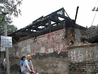 The blaze may have been caused by a shortcut in a power transformer in its west annexed palace. Thanks to a timely evacuation, nobody was hurt. As many as 30 fire engines rushed to the site of the 3 am fire, only to discover the palace, surrounded by residential houses, was difficult of access. A firefighter told the Beijing Evening News that the wooden temple was grossly inflammable and the fire quickly spread. He said it was difficult to put out the fire because there were not enough fire plugs.Two narrow lanes leading up to the palace could merely fit two or three people walking abreast. The blaze was put out only an hour and a half later, when the roof's southern part had collapsed. One neighbouring house was destroyed by the collapsed rafters while three others were inundated by the water sprayed to the fire. The accident also caused a temporary power blackout in the area. According to residents, the local subdistrict office has contracted the west annexed palace to different private companies since 1970s. When the fire broke out, the palace was being used as a small clothing company run by a couple. The migrant workers employed there slept and worked in the palace, said residents. A female official with Xicheng District Government told China Daily the annexed palace was not on the city's protected list. But Ji said it still deserved preservation due to its long history. "Like the Huguo Temple, many relics are vanishing among residential buildings," said Ji, "and these newly built houses are against the ancient styles." "Measures should be taken," he said, "to restore relics' original styles and alleviate the destruction and erosion brought by modern houses." |