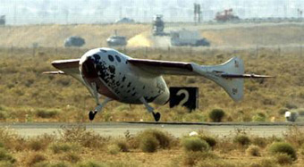Scaled Composites is one of 24 companies from several countries competing for the X Prize, which will go to the first privately funded group to send three people on a suborbital flight 62.5 miles high and repeat the feat within two weeks using the same vehicle.