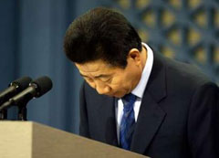 South Korea's President Roh Moo-hyun bows before he speaks to the nation at the presidential Blue House in Seoul June 23, 2004.  [Reuters]