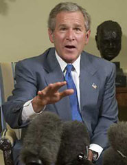 US President Bush urged S. Korean President Roh Moo-hyun not to be intimidated by Iraqi militants who beheaded a South Korean hostage June 22, 2004. [Reuters]