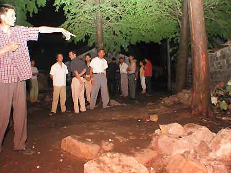 gathered in a makeshift shelter built under five big trees, the tallest thing